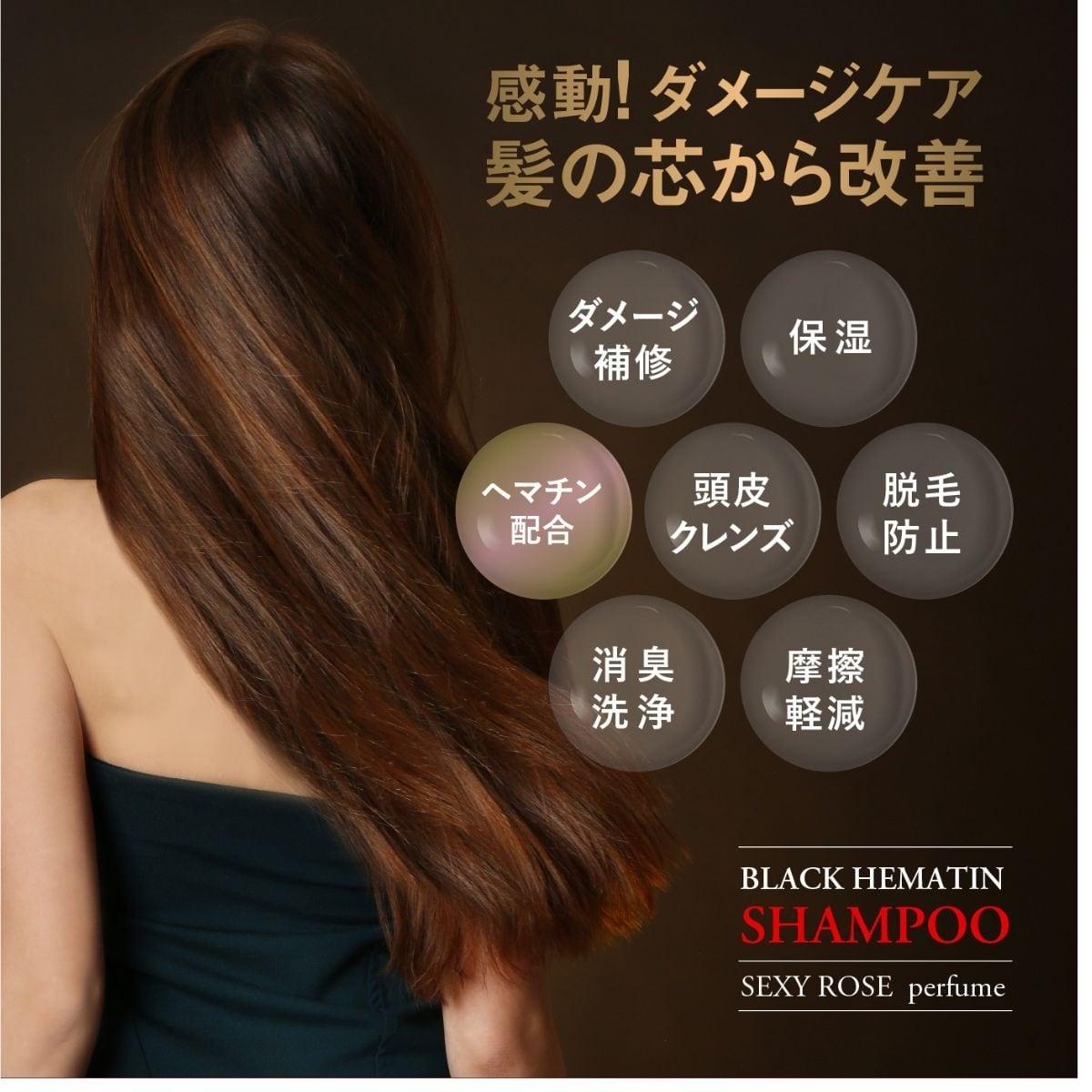 さらに、特別に用意されたヘマチンBLACKシャンプーとリペアトリートメントがセットになっているので、髪のケアまでこれ一つで完結。薔薇の香りに包まれながら、艶やかで健康的な髪を手に入れましょう。贅沢なウェルネス体験をあなた自身にプレゼントしてください。